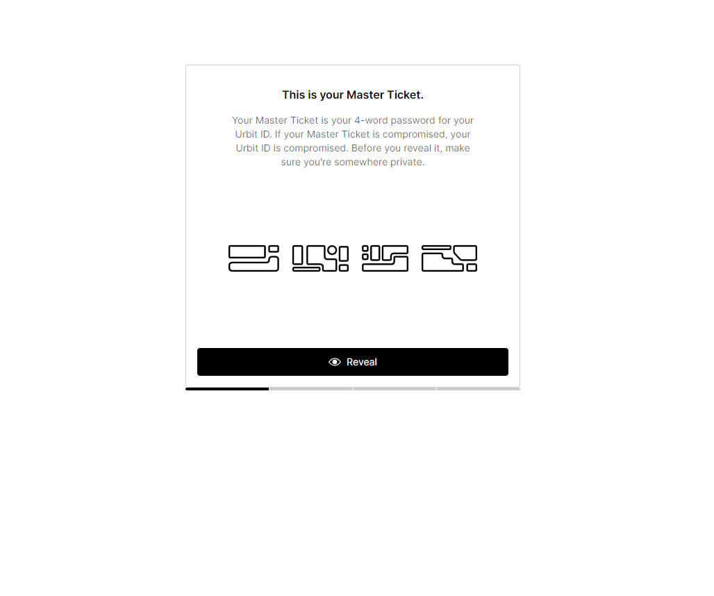 Click Reveal to back up your Master Ticket. Remember, there is no tech support and if you lose access to your Master Ticket, no one else can help you.